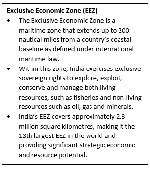 • The initiative operationalises the Union Budget 2025–26 announcement that aimed to promote sustainable utilisation of fisheries resources in the EEZ and high seas.