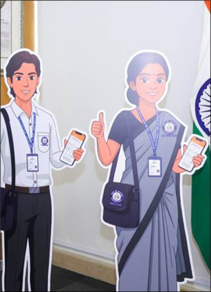 - The mascots Pragati and Vikas represent a female and male census enumerator, respectively.