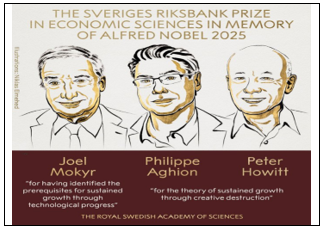 - The award comes with a prize money of 11 million Swedish kronor (Rs 10.25 crore); half the prize money has been awarded to Mokyr, and the remaining half will be shared between Aghion and Howitt.