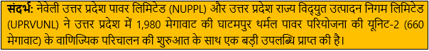 • घाटमपुर थर्मल पावर प्लांट (GTPP) की यूनिट-1 (660 मेगावाट) को सफलतापूर्वक चालू किया गया था और इसका वाणिज्यिक परिचालन 12 दिसंबर, 2024 को शुरू हुआ था।