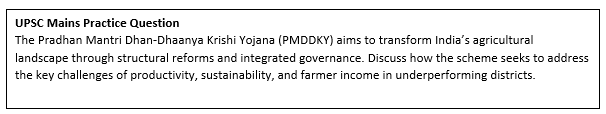 - PMDDKY is a major agricultural reform initiative aimed at improving productivity, sustainability, and profitability in Indian agriculture.
