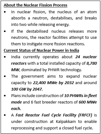 - The achievement signifies India’s advancement towards long-term energy security, nuclear fuel self-reliance, and clean energy transition.