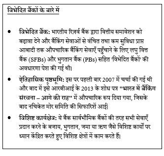 - विभेदित बैंक: सार्वभौमिक बैंकों के विपरीत, इनकी परिचालन संबंधी विशिष्ट सीमाएँ होती हैं।