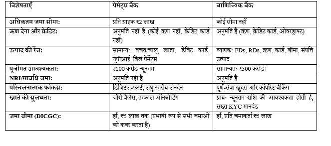 पेमेंट बैंक बनाम वाणिज्यिक बैंक