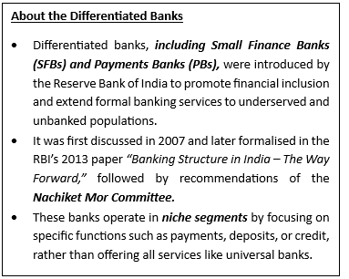 - Differentiated Banks – Unlike universal banks, they have specific operational limitations