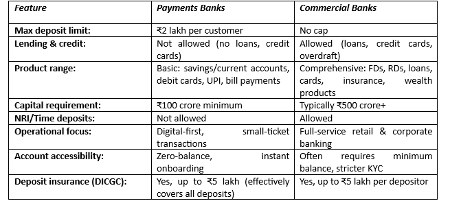 Payments Banks vs Commercial Banks