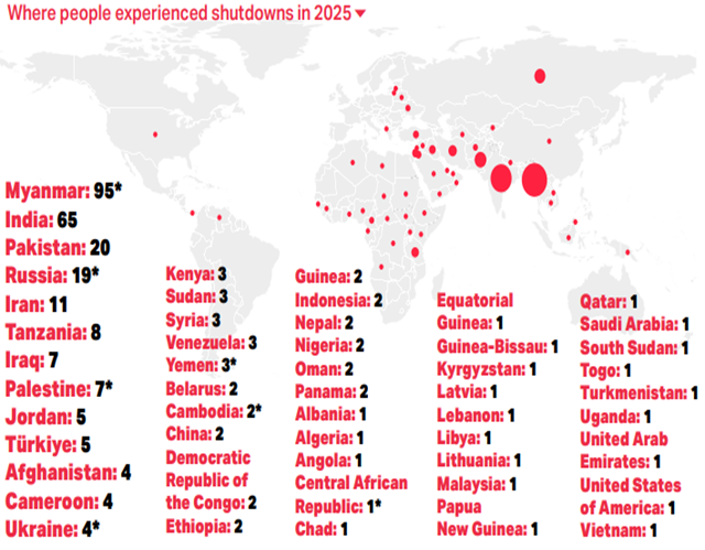 • Not a single day of 2025 passed without at least one shutdown somewhere in the world.