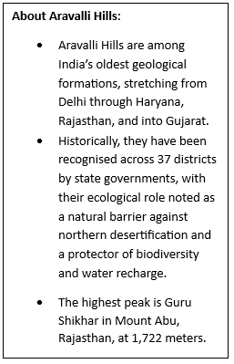 • Environmental Fallout: Since the Aravallis act as a barrier against desert dust migration towards Delhi NCR and neighbouring states, limiting protected areas may worsen air quality and dust storm problems.