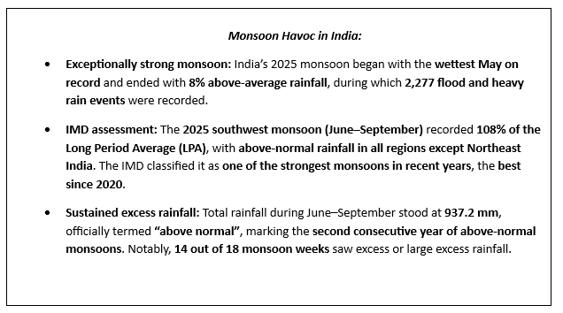 Context: According to a new report by UK charity, Christian Aid, the 2025 southwest monsoon season in India and Pakistan recorded eight per cent more than normal rainfall, triggering maximum fatalities among 2025’s major climate disasters.