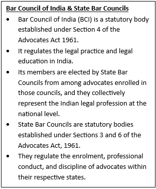 • For instance, Data before the Supreme Court showed that across 18 State Bar Councils, barely 2% i.e., only 9 of 441 elected members are women, and 11 Bar Councils have no women members at all.