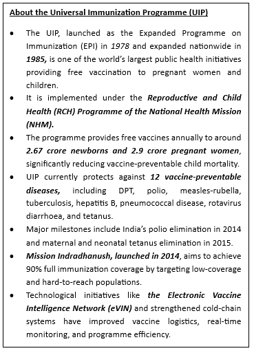 - The launch marks a major step in strengthening India’s public health infrastructure and advancing vaccine self-reliance under the Universal Immunization Programme (UIP).