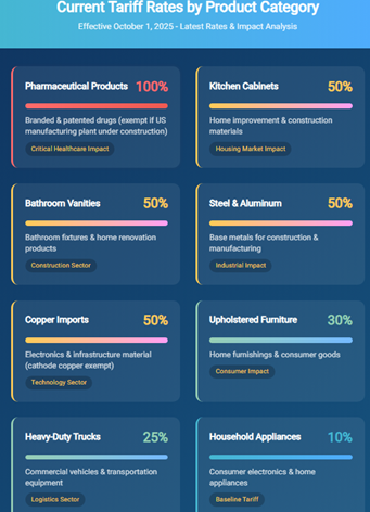On September 26, 2025, U.S. President Donald Trump announced a new wave of tariffs on key imports, including 100% duties on branded pharmaceutical products, 25% tariffs on heavy-duty trucks, and 50% tariffs on kitchen cabinets, effective from October 1, 2025.