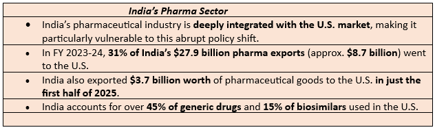 Pharmaceutical Sector Exposure: India is a key supplier of generic and branded pharmaceuticals to the U.S. market.