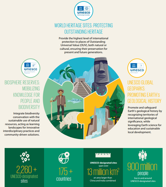 The Report is the first assessment across all UNESCO categories such as World Heritage Sites, Biosphere Reserves and Global Geoparks.