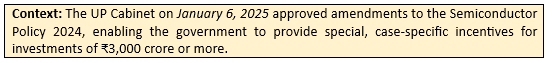 - Fiscal Incentives: Under the new approval, semiconductor units will be eligible for interest subsidy, exemption in net SGST for a period of 10 years.