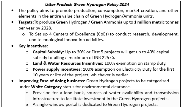 - The Uttar Pradesh New & Renewable Energy Development Agency (UPNEDA) has formally granted the approval to promote research, technology development, capacity building and industrial applications of green hydrogen in the state.