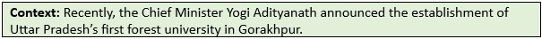 • Once completed, the institution will become India’s first dedicated forest university, aimed at strengthening education, research and training in forestry, wildlife conservation and environmental sciences.