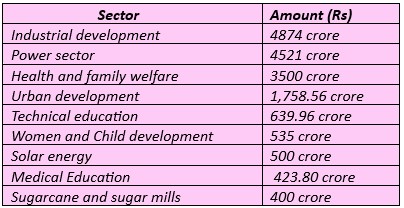 • Rs 1 lakh has also been allocated for the development of International Cricket Stadium in Gorakhpur district.