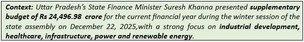 • The supplementary budget constitutes 3.03% of the original state budget of ₹8.08 lakh crore.