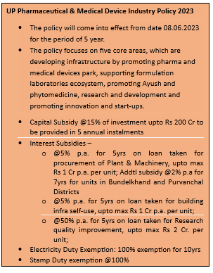 - Diversification of Pharma Geography by encourage pharma companies to invest beyond traditional hubs by exploring opportunities in Bundelkhand, western Uttar Pradesh, and other regions.