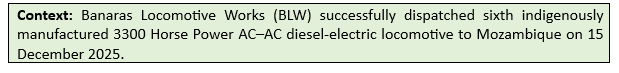 This achievement marks an important step in establishing Varanasi as a major centre for railway locomotive exports and highlights India’s expanding footprint in the global railway sector.