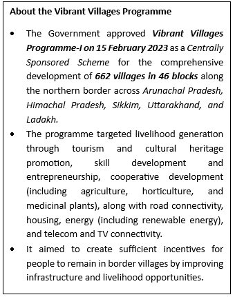 - The programme builds on Vibrant Villages Programme–I, which focused on villages along the China border.